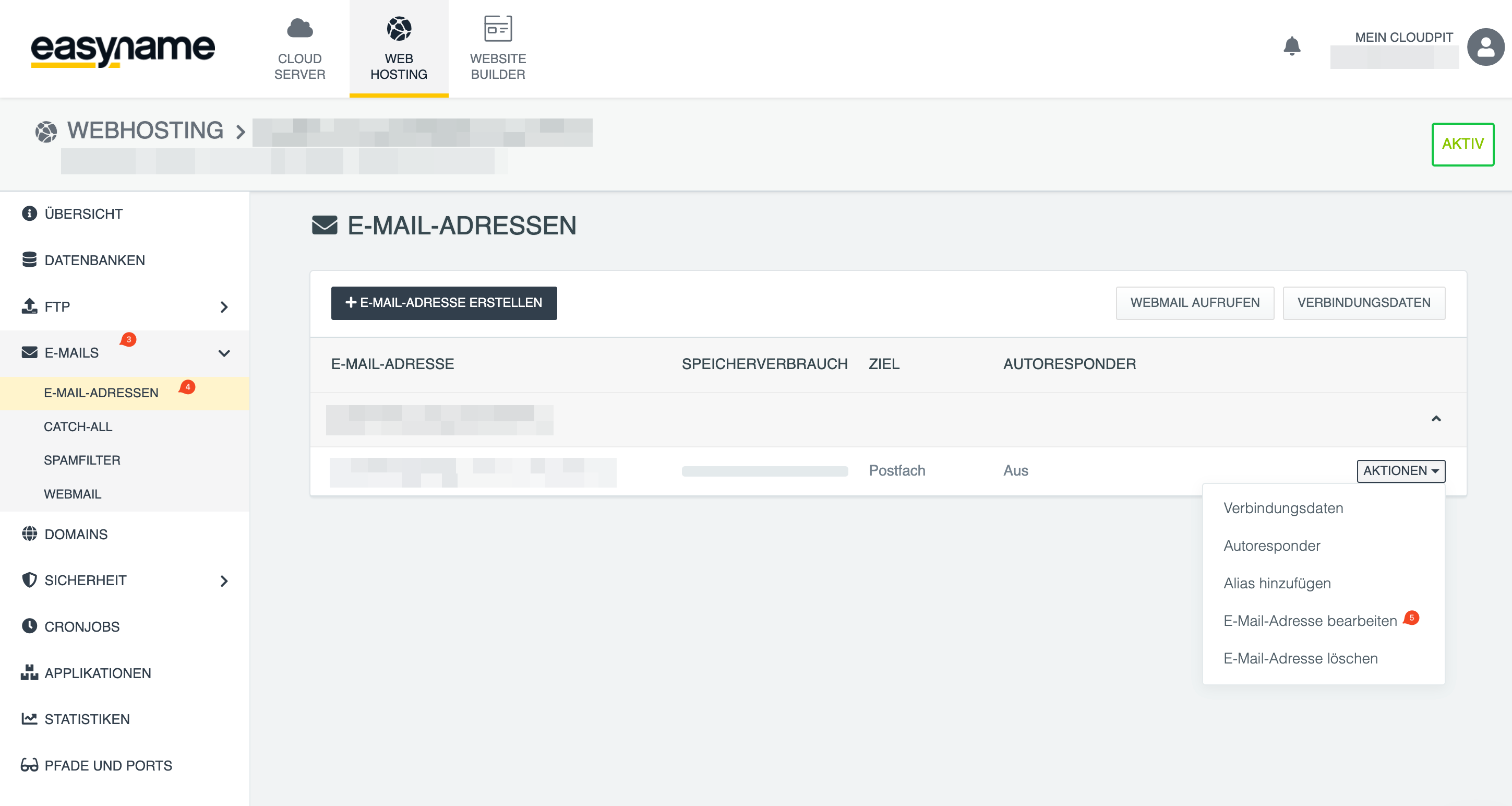 It may happen that your mailbox becomes full or you generally need more storage space for your emails. At easyname, you can adjust the mailbox size at any time—either as a precaution or when the limit has already been reached.