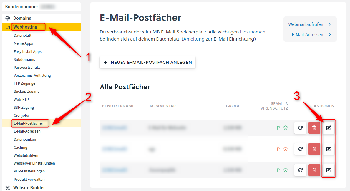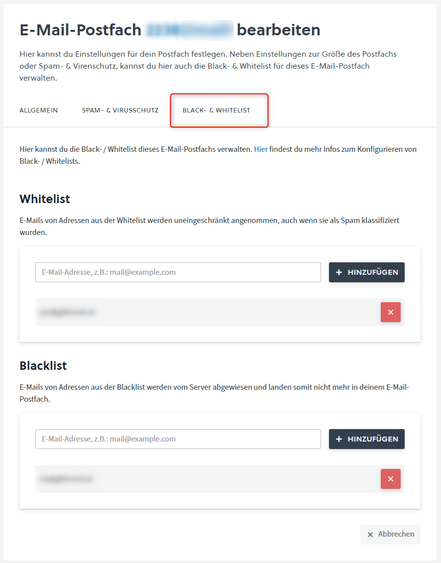 Once you have reached the mailbox management, you will now find the Black- and Whitelist tab at the top.