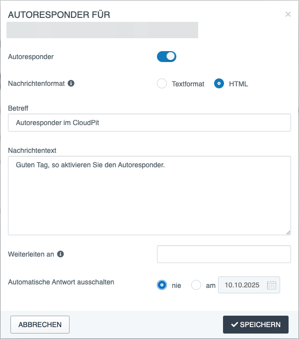 Depending on the system – CloudPit or easyname Controlpanel – the procedure differs slightly. In both cases, the autoresponder can be set up individually for each email address and can be deactivated at any time.