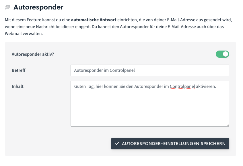 The autoresponder is active after saving and can be deactivated at any time via the same menu items.