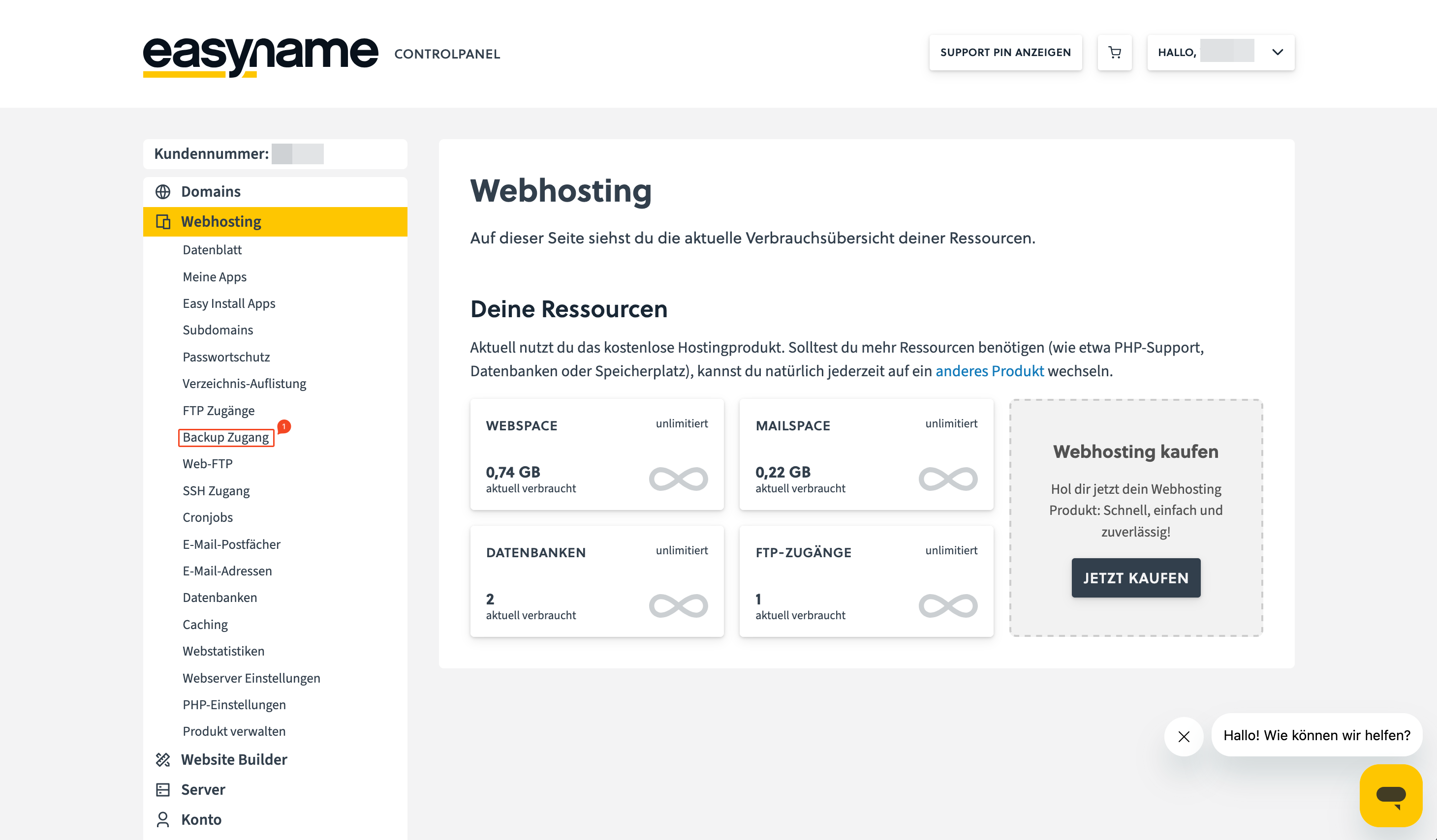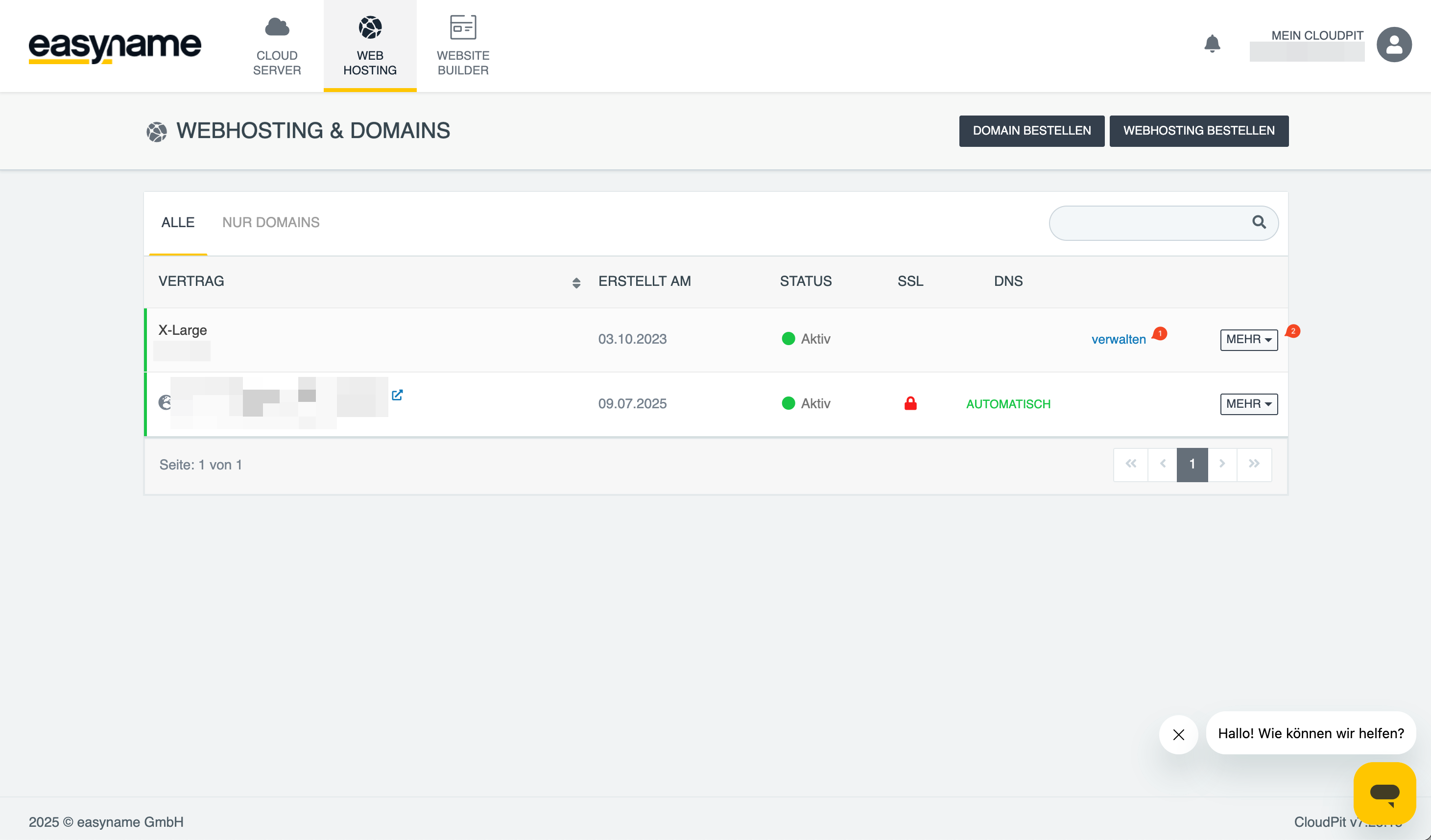 easyname Control Panel: