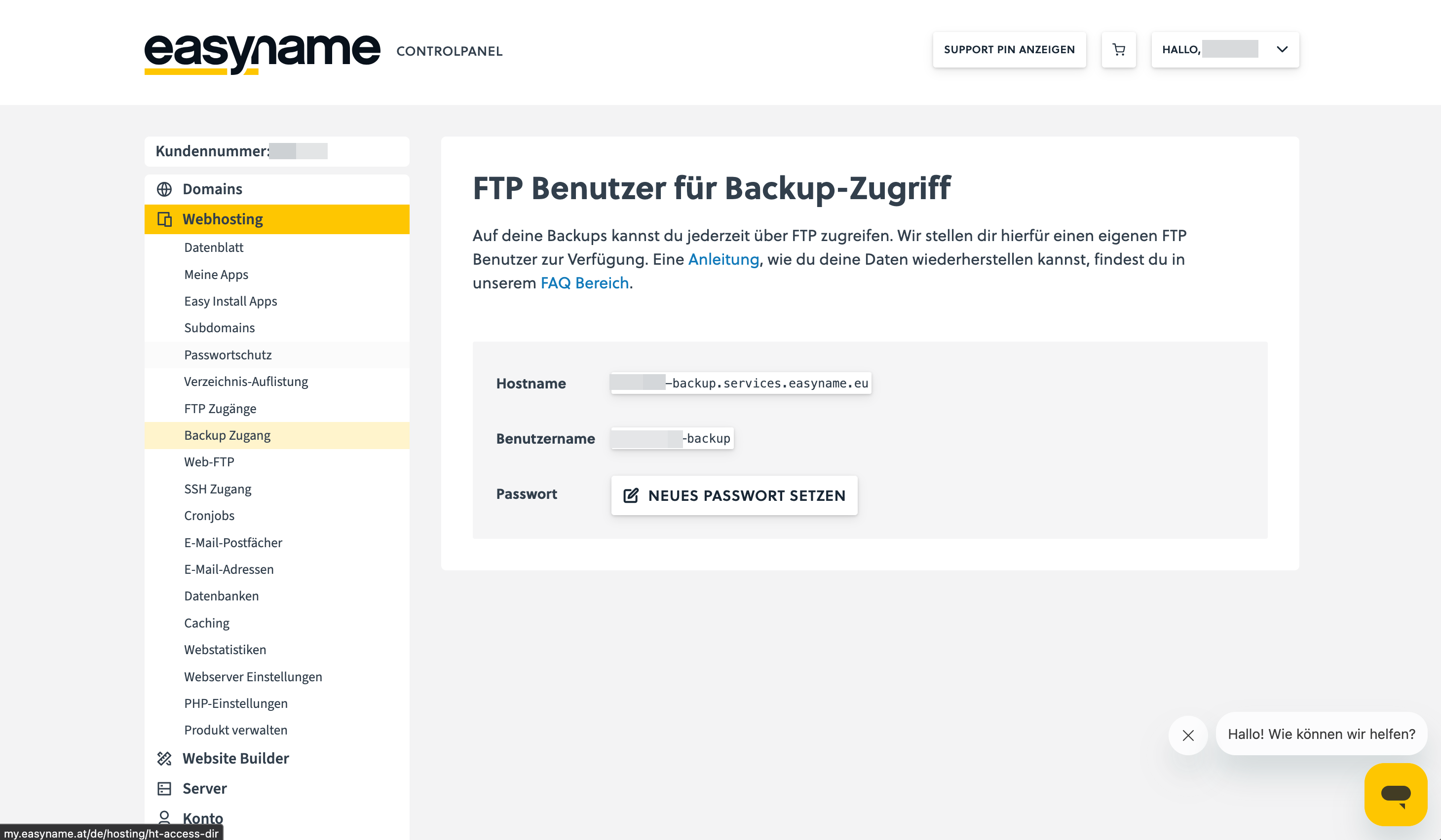 3. There you will see the FTP access data that you can use to log in directly to the backup server.